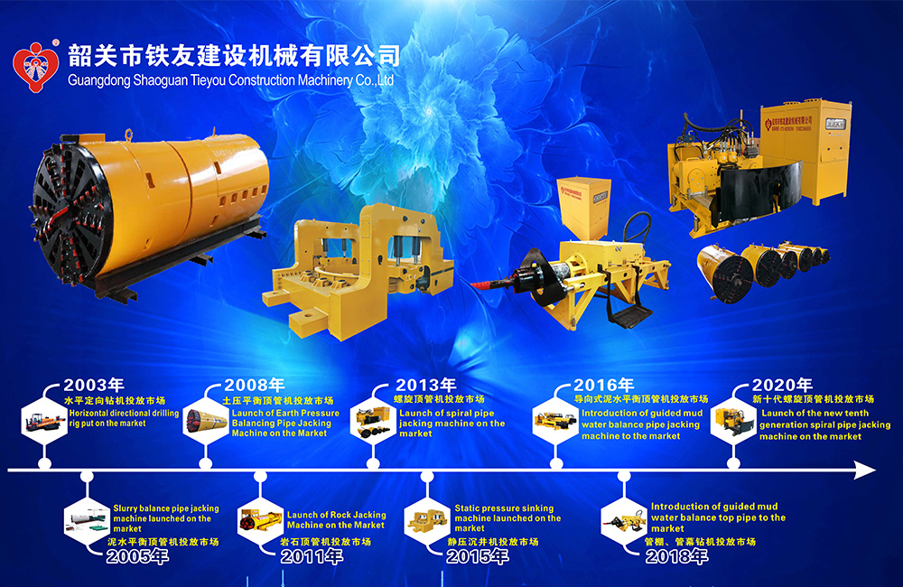 韶關市鐵友建設機械有限公司位于韶關市武江區科技工業園,占地建筑面積25000平方米,公司成立于2000年9月,是一家集研發、制造、銷售和服務于一體的高新科技企業,是廣東省韶關市非開挖設備工程研究開發中心的依托單位,公司自成立以來一直注重于研發、智能化高新技術非開挖產品,公司于2003年通過了ISO9001;2001國際質量體系認證。國際非開挖協會會員、中國非開挖協會會員。國家級高新科技企業下設工程研究開發中心,前期參與過國家級863隧道盾構機項目的科研工作,在對設計與制作積累了豐富的實踐經驗。多年來,一直以“市場需求為奮斗目標”,不斷觀察市場,不斷求新思變,成功完成了多項工程機械及關鍵技術、帶··· [MORE + ]